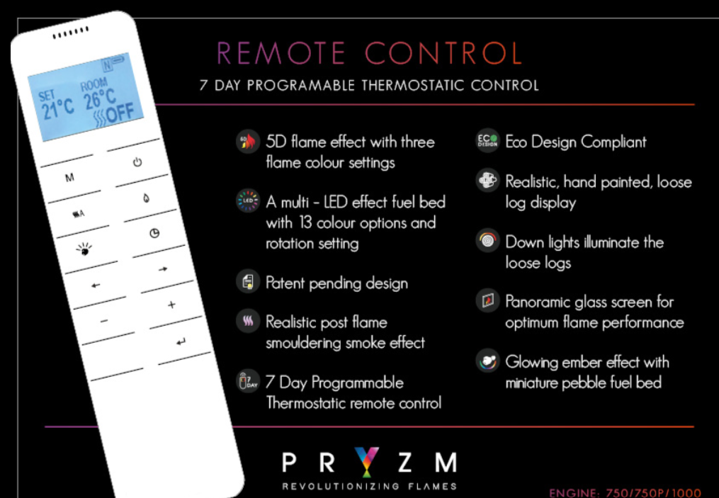 The wall mounted Pryzm is a contemporary delight to behold. Easy fit wall brackets support your fireplace to deliver the visual illusion of levitation. Underscored with a dramatic floating hearth, the Pryzm takes fireplace design to a whole new level, quite literally.